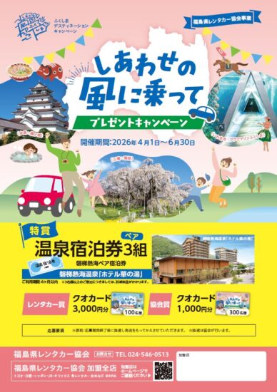 ふくしまデスティネーションキャンペーンに合わせ、2026年4月1日~6月30日まで、 『しあわせの風に乗ってプレゼントキャンペーン』が開催されております🥰