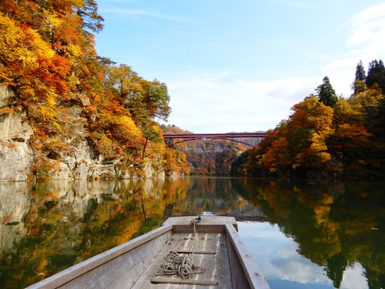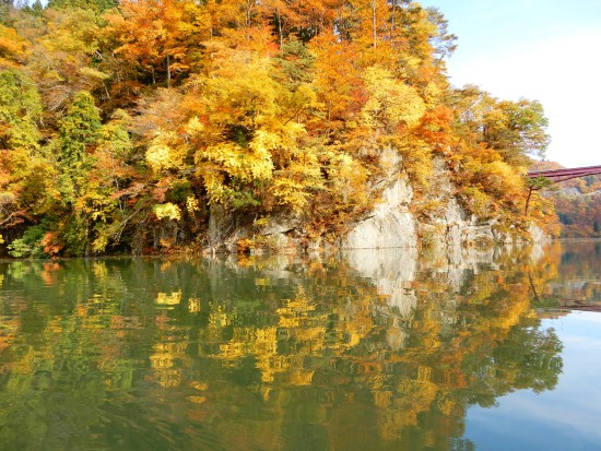 私たちが行ったのは11月上旬。シーズンとしてはラストになってしまいましたが、水面に映るとてもきれいな紅葉を見ることができました。このあと進んでいくと、第一橋梁から写真を撮っている方が手を振ってくれましたよ∩(´∀`)∩