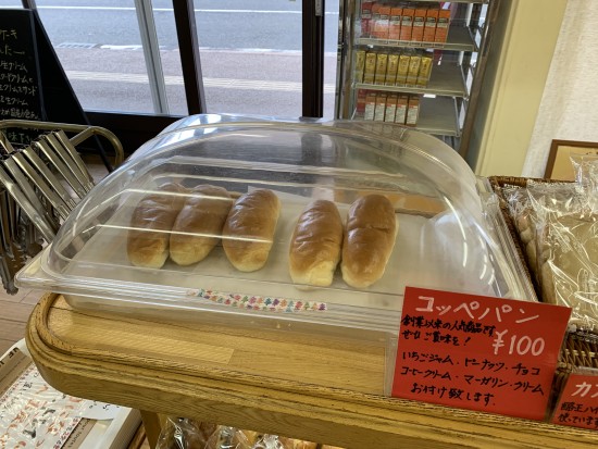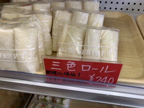 山田パン人気No.2コッペぱん」20cmもあるコッペパンに数種類のフレーバーを挟んでもらえます!ジャム・ピーナツ・マーガリン・コーヒー・カスタードクリーム・チョコ・とろ~りあん・季節のフレーバーなど。今回は店員さんのオススメで季節のフレーバーきなこを挟んでもらいました。楽しみは後からと思っていましたが、このパンを眺めていたら車に乗った瞬間「パクリ」しっとりしたきなこが優し~いお味。見てください、このきめ細かなパン生地。毎日食べても飽きのこない味です。作っている人の優しい思いが伝わります。山田パン人気No.33色ロール」ハム・たまご・サラダの調理パンです。店内はパンだけでなく、シュークリーム・フルーツサンド・ロールケーキなどもあります。山田パンは一口食べると笑顔になれるパンが沢山!みなさんも昔を懐かしみながらぜひ頬張ってみて下さいね。