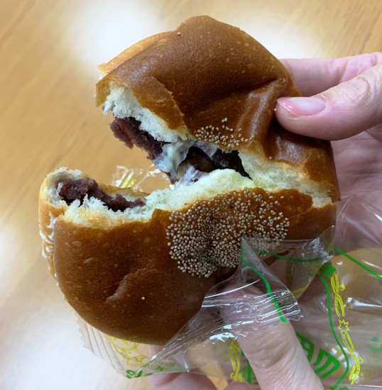 あんバターパンは、餡とバターがはみ出るくらいしっかり入っていて、まずパンが美味しい~!