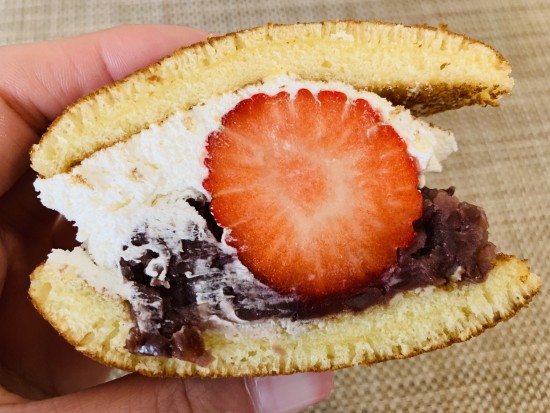 でも、いちごや焼芋などの季節限定は予約できません。なので確実に買いたいときは午前中がオススメ!実際、私たちもお昼過ぎに行きましたが、いちごどら焼きは最後のひとつでした💦定番は「生どら焼き」。生地がモチモチしていて、あんこたっぷりのとてもおいしいどら焼きʕ→ᴥ←ʔ☆生クリームはあまり甘くなく、男性でもペロッと食べれそうです。130円(税抜)とコスパも素晴らしい!