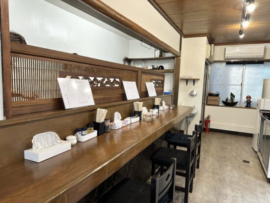 ラーメン屋さんの匂いとともに、暖簾をくぐると、清潔感のある、すっきりとした落ち着く店内。「いらっしゃいませ~」と穏やかな雰囲気の店主と奥様が笑顔で声をかけてくださいました。「ラーメン屋さんはちょっと勇気がいる」という女性の方でも気兼ねなく入りやすいのではないかと思います。