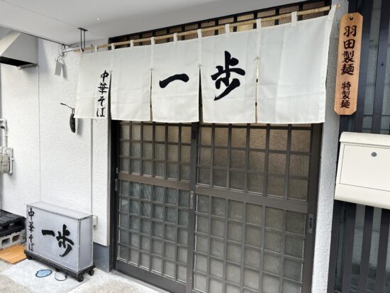 お店の名前は「中華そば 一歩(いっぽ)」。店外にもスープのいい香りが鼻をくすぐります♪