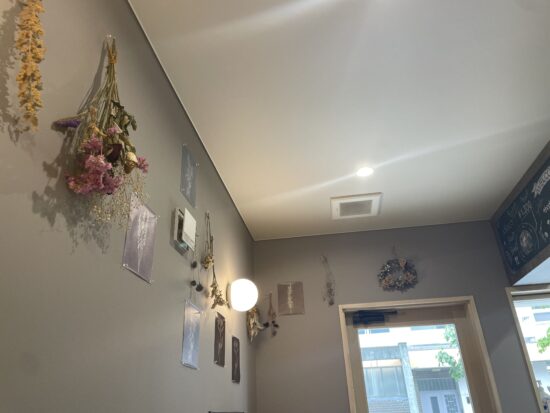 テーブル席の壁にはドライフラワーなどが飾られていて、落ち着いた店内でゆったりと、待ち時間も華やかな気持ちで過ごせます😌