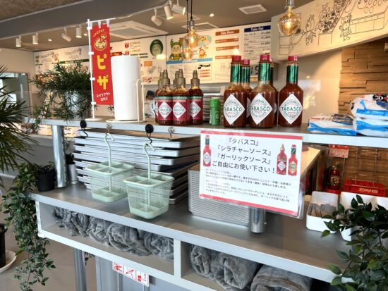 タバスコやソースなど、基本的にはセルフスタイル。ブランケット等もあり女性にはうれしいですね♡