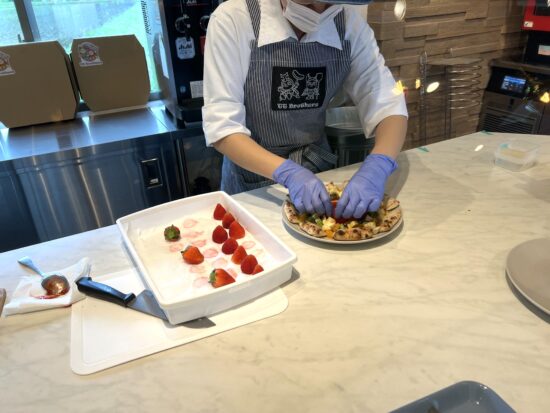 取材時はイチゴ🍓でしたが、夏は限定でモモ🍑でした。インスタ映えまちがいなしの華やかさ、旬のくだものを使用しているので、行くたびにワクワクできます!