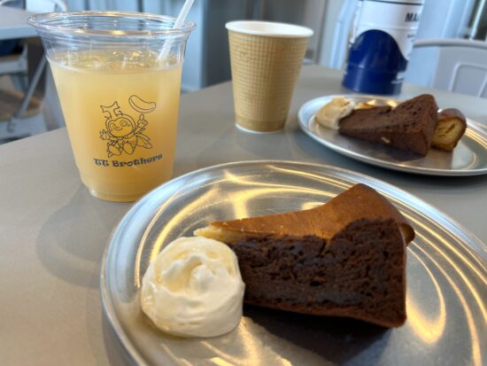 ガトーショコラは自家製、桃のドリンクはもちろん福島県産です🍹お店のまわりは自然に囲まれ、ゆったりとした時間が流れていてついつい長居してしまいそうです。