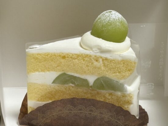 こちらのシャインマスカットのショートケーキを食べてみたところ…スポンジがきめ細やかでおいしい~!