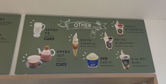 ※パスチャライズ製法(パスチャライザーと言う特殊な釜を用い、牛乳にやさしい温度(85℃で15分間)でゆっくり殺菌)による牛乳や乳製品が人気で、直営カフェではそのおいしさを直接伝えることを目的に今年10月にオープン☆☆🥛🍦さっそく店内のメニュー表を見ると、パスチャライズ牛乳を使用した様々なミルクスイーツがたくさん!どれにしようか迷う~❤