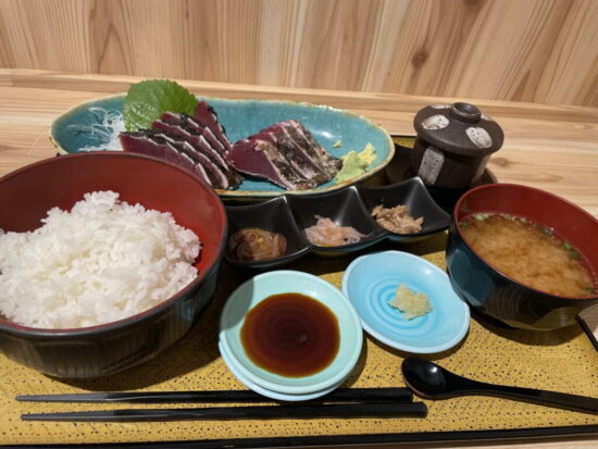 おのざきさんで毎日焼き上げている「かつおの火山(ひやま)」🐟🔥※全国的にはかつおのたたきと呼ばれていますが、潮目食堂ではこのかつおの火山を使った定食が食べられます😋”まさに、これが常磐もの”と感動の美味しさです!!