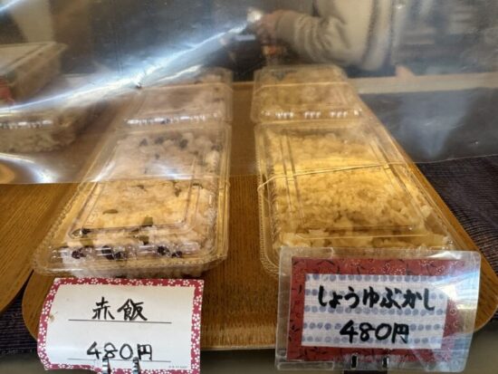 実は豆大福のほかに、密かに人気の「おふかし」の数々。とくにお気に入りは「しょうゆぶかし」。地方によっては「おこわ」とも言いますね。甘いものを食べると、しょっぱいものを食べたくなってしまう~(*^▽^*)