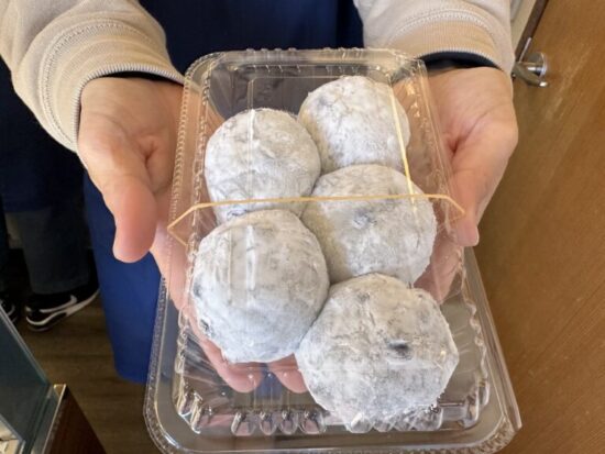大きさは直径5㎝ほど。この大きさが豆大福好きには丁度いいんです!モチモチ具合は見ただけで伝わってきます。これ絶対おいしいやつ(^^♪