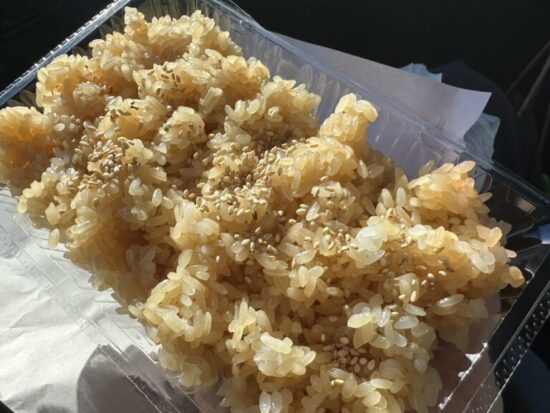 もち米を蒸し上げたおふかしはモチモチの食感。しょうゆの旨味がじんわりともち米にしみていて、たまらなくおいしい~。やっぱりこういう手作りで素朴な味のものは、温かみがあって好きだなぁ❤
