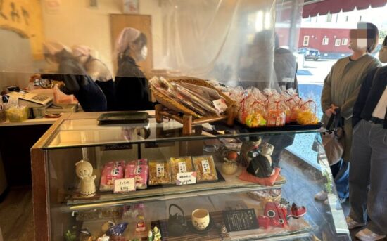 お店を訪れたこの日は休日の朝イチ。豆大福を買い求めるお客様が途切れることなく来店し行列ができるほど。しかし回転が速いので、見た目より待たずに順番が回ってくると思います。