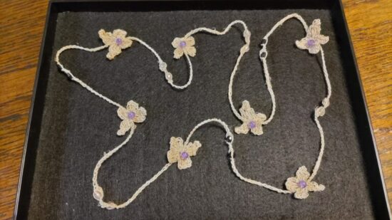 こちらは、からむし織のアクセサリー!会場となる「道の駅 からむし織の里しょうわ」では、様々なからむし織の商品が売っていますので、きっとあなたのお気に入りの一品も見つけられること間違いなしです🤩