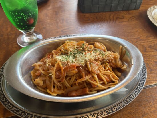 喫茶店のナポリタン!という感じ🍝昔懐かしい、素朴な感じのトマトケチャップがいいんですよね。具材たっぷり、玉ねぎのシャキシャキ感がいいアクセントになっています。食べきれるかも?と思いましたが、やはりお腹いっぱいになってしまいました😅