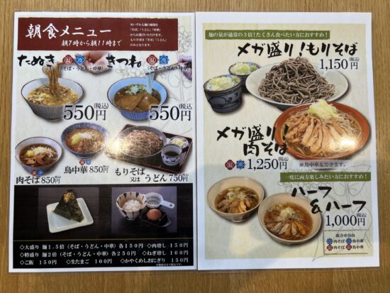 ※こちらはメニューの一部。そば八さんでは、朝7~11時までの時間限定で、お得な朝食メニューを提供しています。