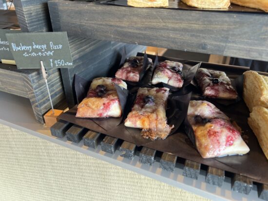 同じく玉川村特産の「ブルーベリー」を使った「ブルーベリーチーズピザ」もぜひ~甘みのあるデザートピザとなっています🎵