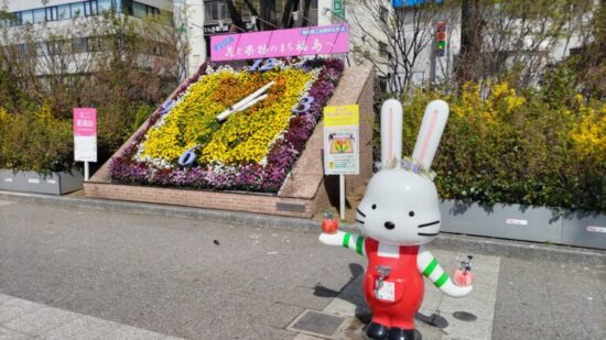 福島市の玄関口「福島駅」東口では、福島市のご当地キャラ“ももりん”が花時計の前でみなさまをお出迎え🌼🕰