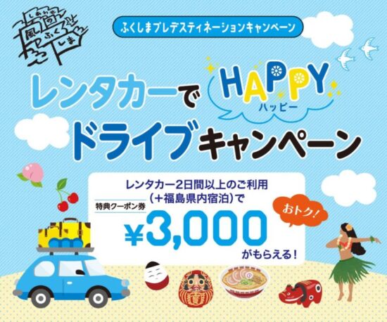 また、その一環として実施される「レンタカーでHAPPYドライブキャンペーン」にわたしたちトヨタレンタリース福島も参画しています🚗