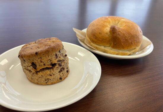 珈琲と合うスイーツメニューは様々あり、ご夫婦で試行錯誤してメニューを開発されています。バスクチーズケーキとガトーショコラ、ホワイトチョコテリーヌのほか、新しく考案されたケイクタタンやレモンケーキなど、日によってメニューに変動はあるようですが種類豊富!私たちもあらかじめDMにてお目当てのメニューを注文!左奥がレモンケーキ、手前がホワイトチョコテリーヌ、アールグレイ✨レモンケーキは上にかかっているアイシングにレモンが多く入っているようで、下の生地とともに合わさることで程よいレモン感が出来上がり、甘いものが苦手な方でも美味しく頂ける一品!テリーヌは、クリームチーズの濃厚さが強く、ホワイトチョコの甘さがあとからほのかに感じられ、珈琲と合わないわけがないという味でした!レモンケーキ×アールグレイ、テリーヌ×珈琲の組み合わせは相性抜群です^^他にも、懐かしさ感じるスコーンやもっちもちのベーグルも販売されているので、ぜひぜひそちらもチェックしてみてください♪何を頼むにせよ、限定のものであったり、その日は作っていないものもあるため、今日は何があるのかなど行く前に万代蔵珈琲店InstagramDMにて確認することをおすすめします。