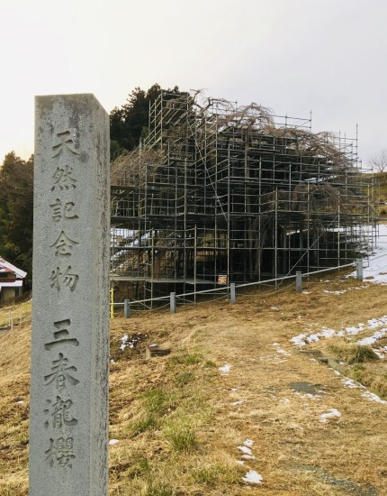 ■足場を組まれた滝桜風景:写真三春まちづくり公社