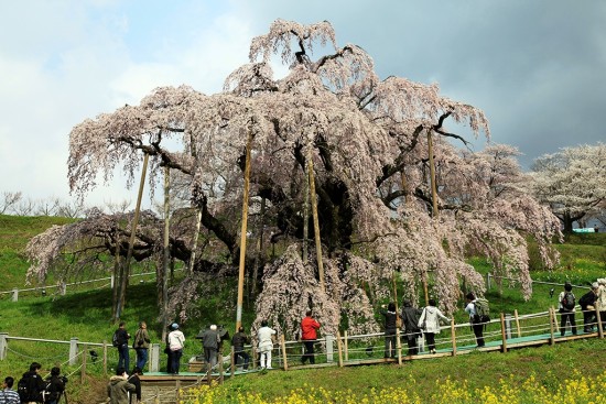 滝桜を長年診療し主治医の鈴木俊行さんの言葉です。満開に咲く滝桜の姿は、この一年、一生懸命生きてきた証だと。そしてこの大きな治療後の滝桜は特に綺麗な色を付けるのだそうです。滝桜に近づいて下から見上げてみて下さい。淡いピンク色の花びらが降り注ぐ姿が心に焼きついて、きっと来年も会いにきたくなるはずです。