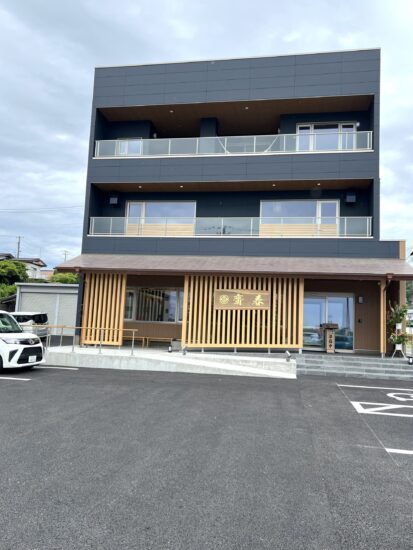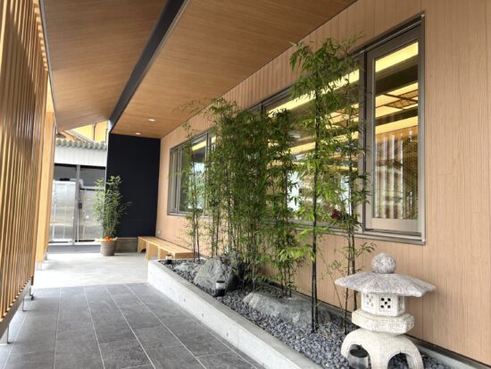 その後、仮設店舗での営業を再開しつつ、常連の方々の励ましもあり、2025年の今年、完全リニューアルオープン!1階はお食事処、2・3階は旅館となっています。お店の外には、憩いの場となる待合スペースも🌿