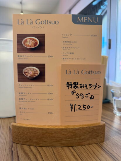 そして、気になる手書きメニュー📝「特製みそラーメン ららご」🍜寒い季節にぴったりな、心も身体も温まる特製みそラーメンがこの冬だけの限定メニューで登場しているらしい!さっそく注文!