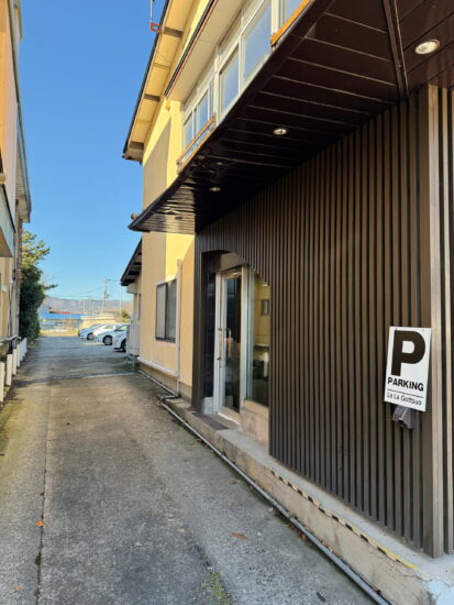 お店横の通路を奥までいくと、駐車場があります。ただ、とても細い道だったので運転には十分注意してくださいね⚠