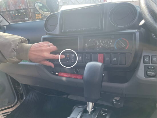 まずパワーゲートを動かすときは、運転席からこちらのボタンをONにします。※OFFの状態だとパワーゲートも動きません!