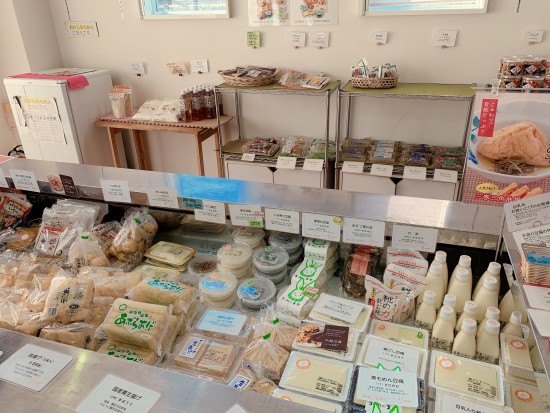 このカフェには販売店舗も併設しているので、ランチで頂いたお豆腐や三角揚、湯葉やそのほか大豆製品全般が購入できます。デザートの豆乳杏仁豆腐や豆乳シフォンケーキまで、もちろん味もとっても美味しいので、女性の多い職場のお土産にも喜ばれると思います。