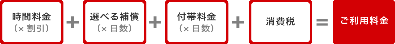 時間料金や免責補償料は車種によって異なります。また、更に詳しい計算方法はこちらをご覧ください。